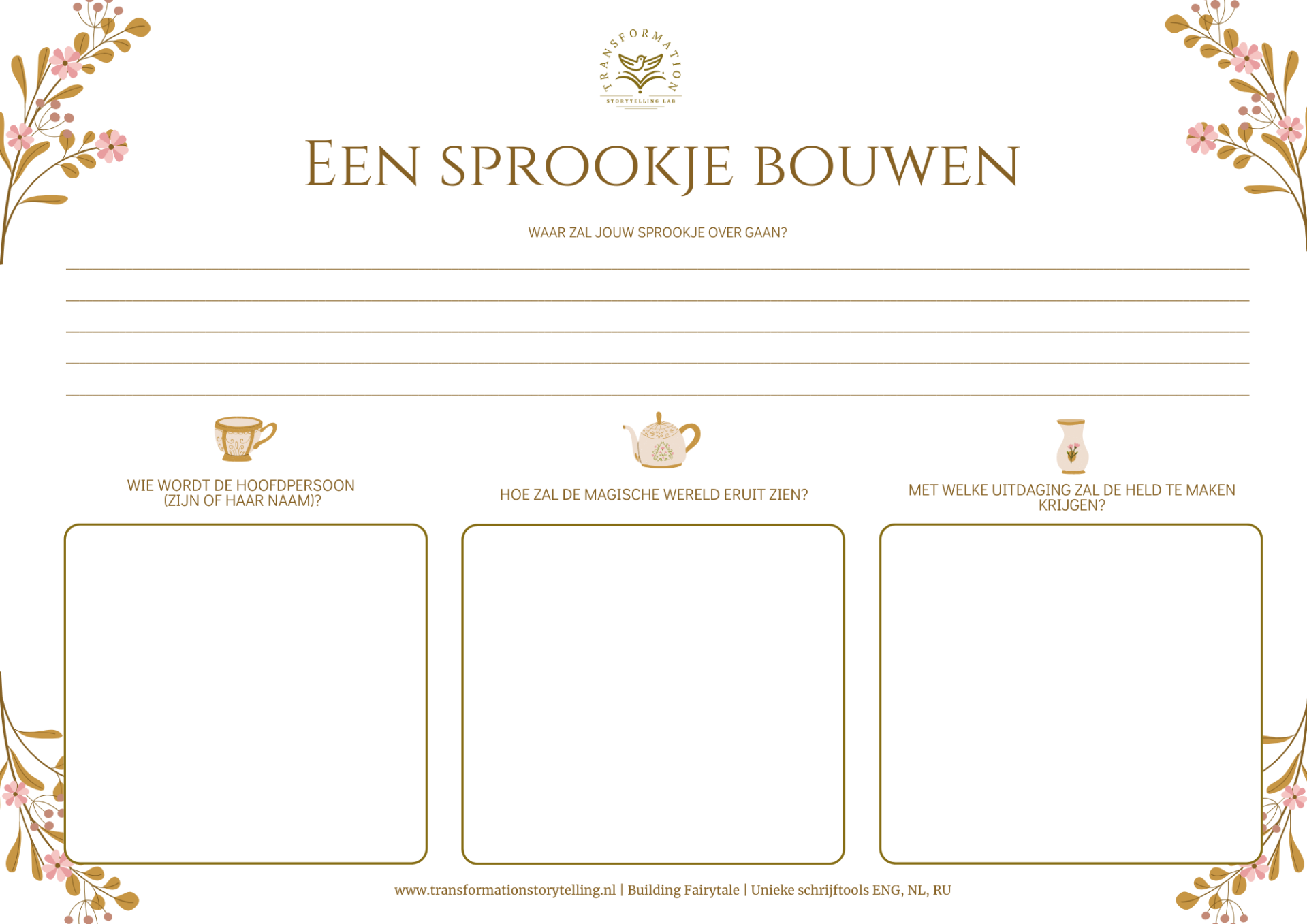 Je kunt dit boekje thuis uitprinten en je kind zijn of haar eigen verhaal laten verzinnen. Bladzijde voor bladzijde kan je kind tekenen, schrijven en een sprookje maken met helden, avonturen en een zelfgekozen einde.